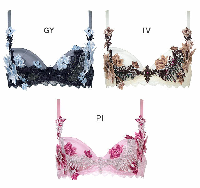 ブラジャー(P-Up・BCカップ) ブラジャー(P-Up・DEFカップ) ブラジャー(P-Up・Gカップ) Tバックショーツ ボーイレングスショーツ スタンダードショーツ(M・L) スタンダードショーツ(LL) キャミソール(M・L) キャミソール(LL) スリップ ガーターベルト ・バストボリュームを脇から中央に寄せ、きれいな谷間をつくるプッシュアップタイプ ・(C)80サイズ、(D〜G)カップは幅広フラットワイヤーを使用 ・(C)80サイズ、(D〜G)カップは樹脂ボーンを使用 ・左カップ前側のアップリケにはスワロフスキー・クリスタル付き、ラメ糸を使用 ・カップ脇と前中心のアップリケにはスワロフスキー・クリスタル付き ・右カップ前側のアップリケにはラメ糸を使用 ・パッド受け有り *ワコール 3/4カップブラ ブランド WACOAL[ワコール] サイズ Dカップ(D65・D70・D75・D80) Eカップ(E65・E70・E75・E80) Fカップ(F65・F70・F75・F80) カラー GY、IV、PI ※サイズによりお取扱のないカラーもございます。