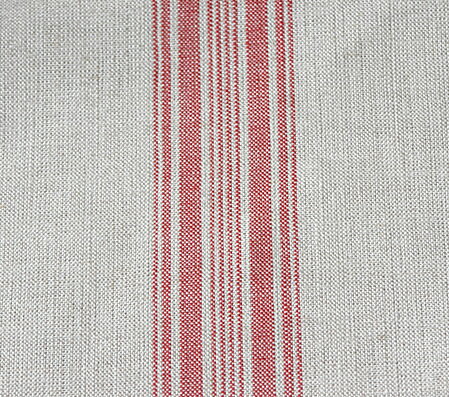 ハンドメイドリネン生地日本製 厚手30番手 ナチュラル地にレッドストライプ クロス幅135cmアイリッシュリネンの伝統を受け継ぐ上質の先染めリネン糸より織った日本製ストライプリネン生地です。