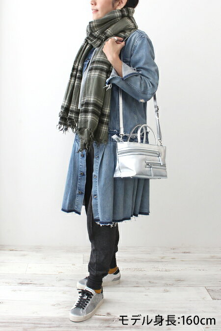 ひと巻きでこのボリューム! 【バッグ:POTIOR,スニーカー:D.A.T.E.】 【画像をクリックすると拡大します】 大きめサイズをザックリ巻いてボリュームコーデに仕上がります。