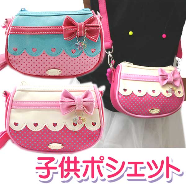 ポシェット キッズ 子供 女の子 バッグ ツートンカラー リボン ドット柄 2WAY ショルダー ショルダーバッグ 斜めがけ ショルダーバッグ キッズ かわいい ギフト クリスマスプレゼント 子供 女の子 3歳 4歳 5歳 6歳