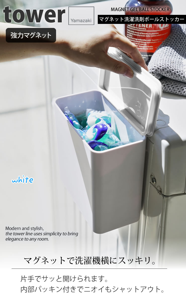 マグネット洗濯洗剤ボールストッカー タワー(tower) / 山崎実業 YAMAZAKI 仕様 サイズ:サイズ:約幅17cm×奥行9.5cm×高さ17cm 商品重量:約460g 耐荷重:約1.5kg 内容量:約1.8L 内寸:約16cm×8cm×15.5cm 裏面:強力マグネットシート付き 材 質:ABS樹脂 マグネット、パッキン・滑り止め:シリコーン 耐熱温度:90度/ 耐冷温度:-40度 デザイン:日本/原産国:中国 ※WEB上のため、実物と画像の色が、多少違う点がございます。