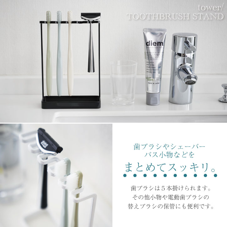 キーワード tower 洗面台 お風呂 お風呂場 浴室 剃刀 髭剃り シェーバー 電動 ハブラシ 歯ブラシ ラック 収納 フック 歯ぶらし かみそり シンプル モノトーン おしゃれ インテリア 白 黒 ホワイト ブラック 山崎実業 4698 4699 201902-02