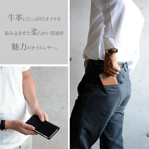 ■商品詳細 About 商品 スマホケース 多機種対応 手帳型「ソフトオイルレザー」 ポイント ・留め具がなくシンプルなデザインで、使いやすさも抜群です。