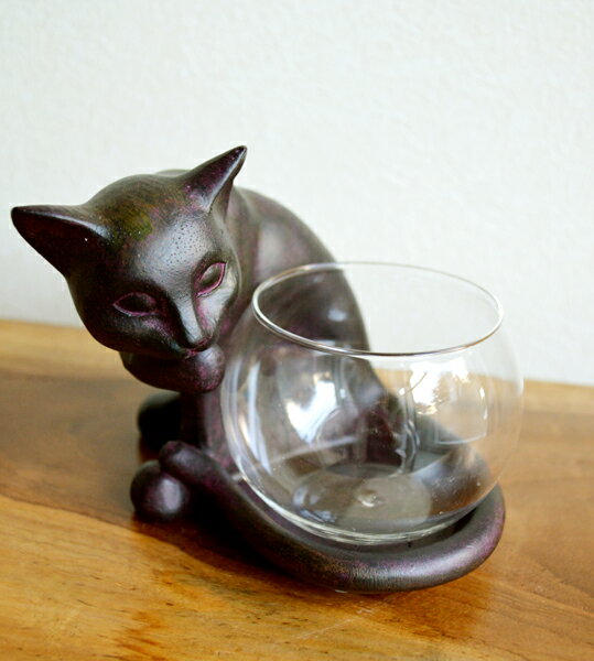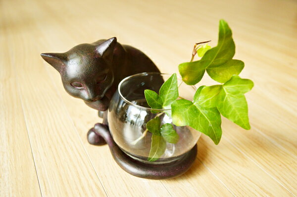 ブロンズ調仕上げになっておりますので、高級感と重厚さがあり贈り物としてもおすすめです!⇒アニマル置物・オブジェ 一覧へ ブロンズ調ネコちゃんのガラスポット (しっぽ囲みタイプ) 人気のブロンズ調のネコシリーズからガラスポットを抱いたネコちゃん☆